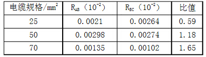 根據(jù)標(biāo)準(zhǔn)需檢測A、B和B、C間電阻(分別為如、R彤),端頭壓接部位的電阻與所連接同長度導(dǎo)線電阻的比值為:(2RAB一RBC)/RBC,壓接電阻檢測結(jié)果如圖所示。