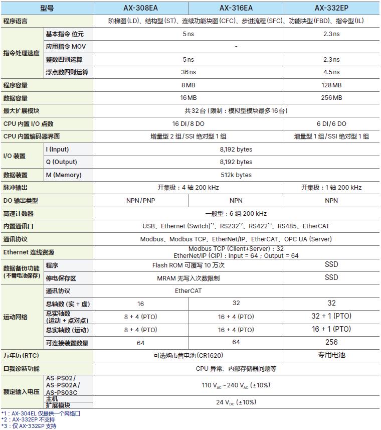 - AX-308E?/?AX-316E?/?AX-332E CPU最高可支持8?/?16?/?32軸EtherCAT (AX-332E 同步時(shí)間最快 1ms@32軸)