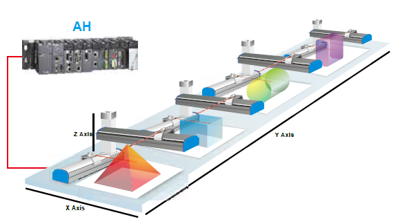 • AH500的運(yùn)動(dòng)控制功能,可實(shí)現(xiàn)任意三軸直線插補(bǔ)、任意兩軸圓弧插補(bǔ)、及任意三軸螺旋插補(bǔ)與連續(xù)插補(bǔ)功能,透過(guò)臺(tái)達(dá)DMCNET高速通訊網(wǎng)絡(luò)架構(gòu),更可達(dá)到1ms的指令周期內(nèi)12軸同動(dòng)或4組3軸同動(dòng)插補(bǔ)功能。無(wú)論是復(fù)雜的過(guò)程控制或是精密的運(yùn)動(dòng)控制需求,都能透過(guò)AH500來(lái)實(shí)現(xiàn),有效應(yīng)用于各種產(chǎn)業(yè)機(jī)臺(tái),如建材機(jī),經(jīng)編機(jī),食品包裝機(jī)等等。